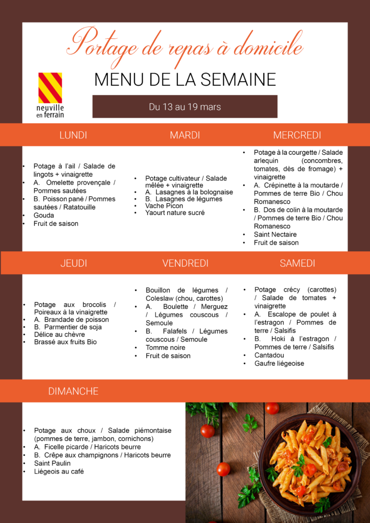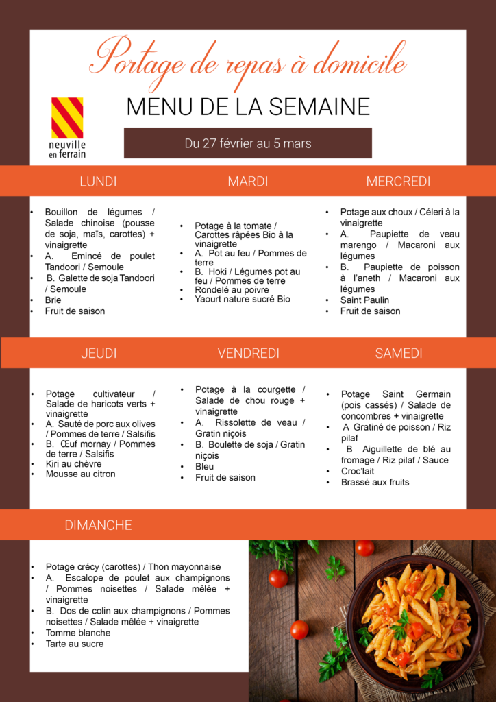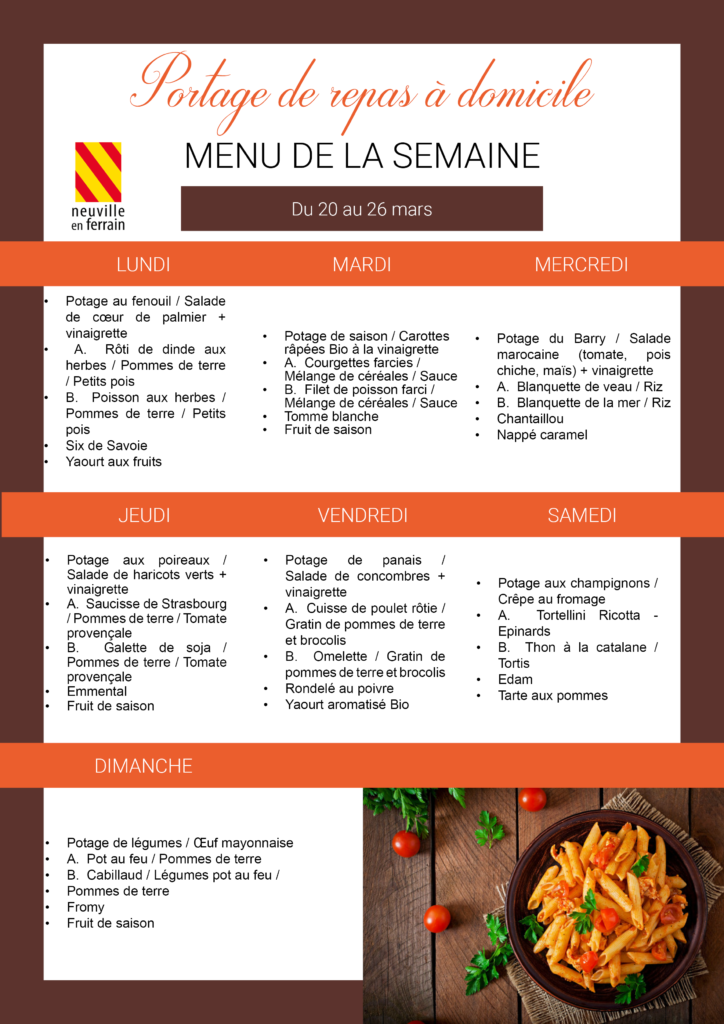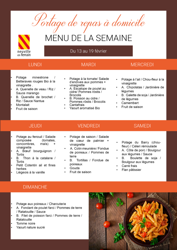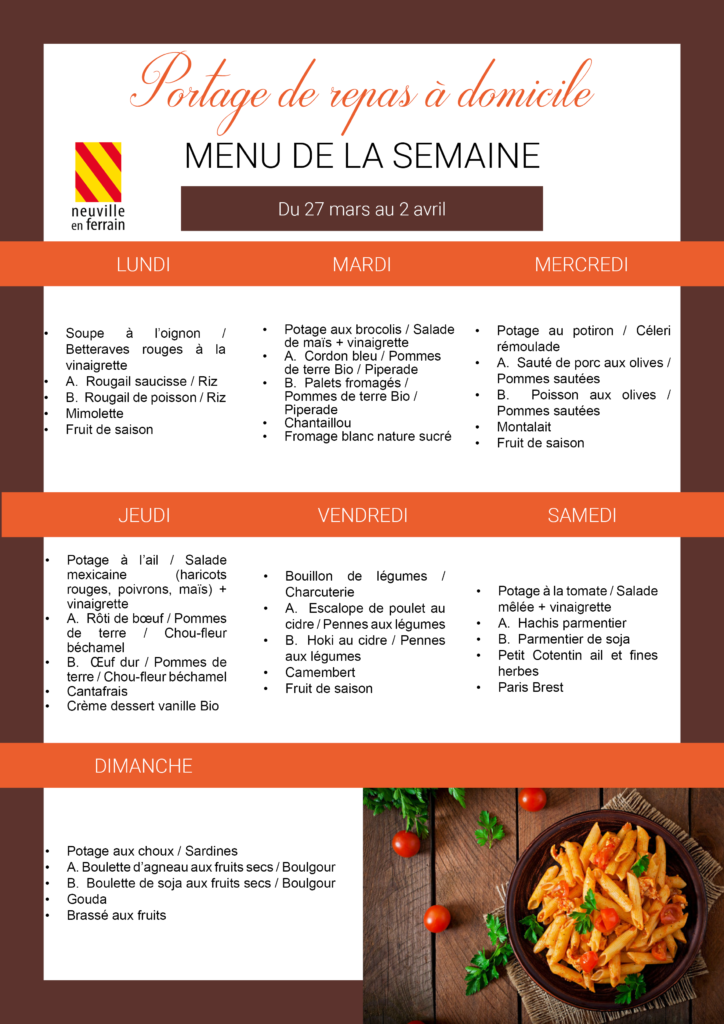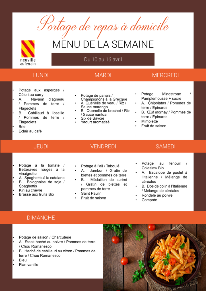Il existe un service de portage de repas à domicile, pour les Seniors de plus de 75 ans, ainsi que pour les personnes souffrantes d’une pathologie et nécessitant un maintien à domicile. Ce service est proposé du lundi au dimanche.