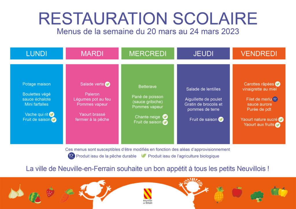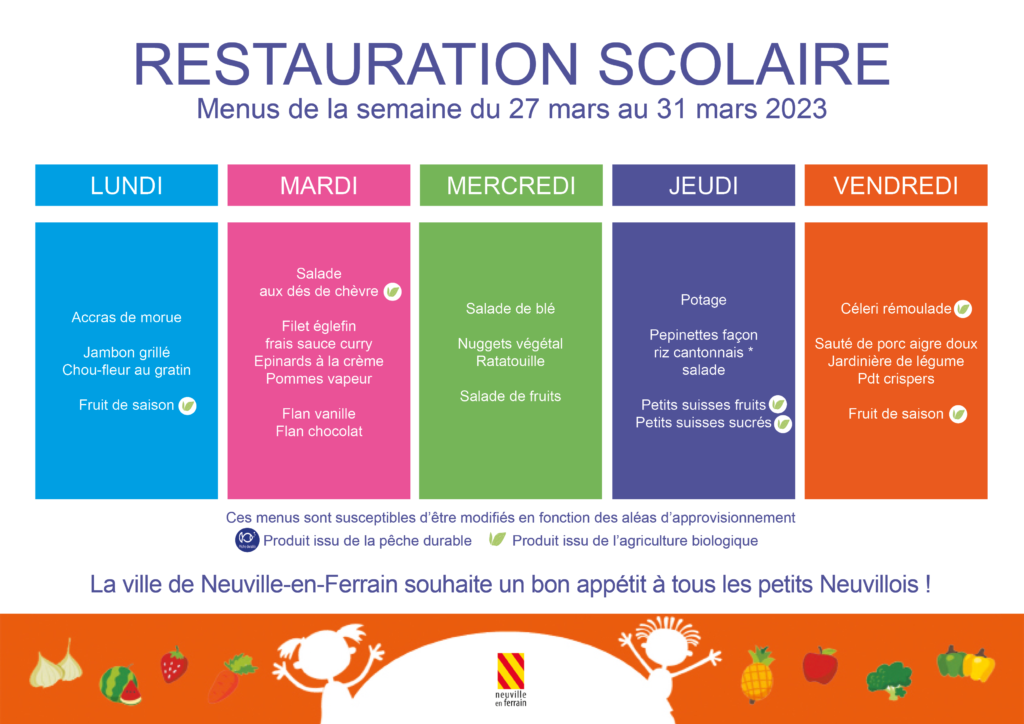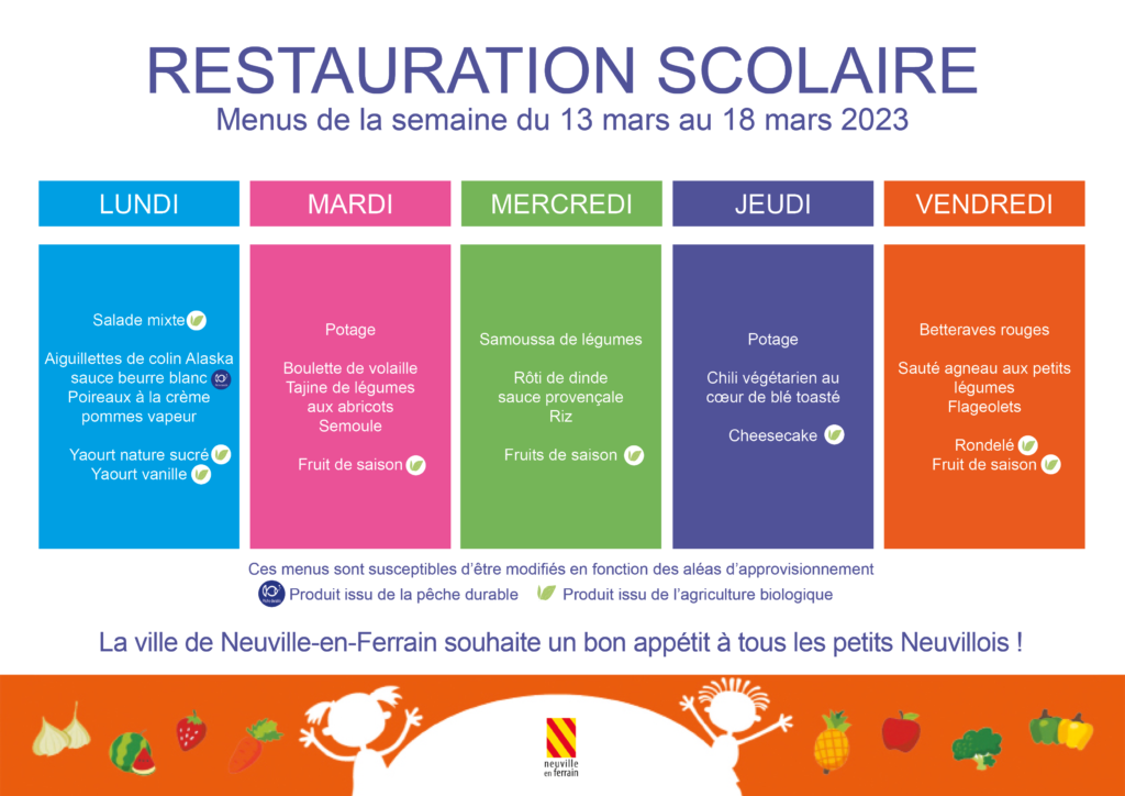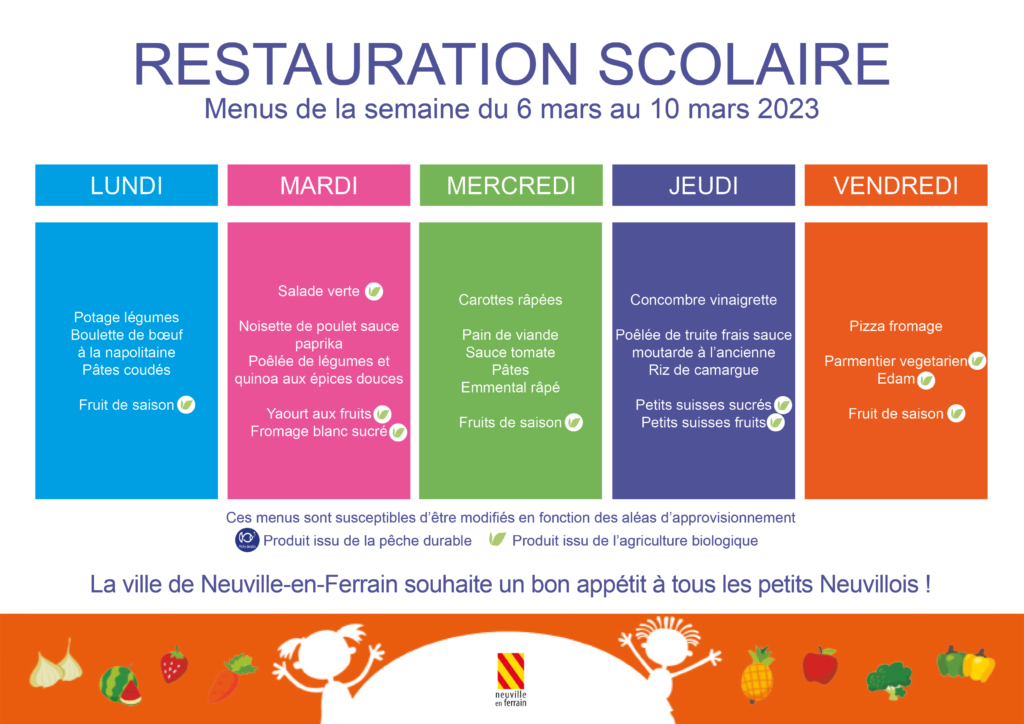 Chaque jour, les enfants de la Ville de Neuville-en-Ferrain peuvent déjeuner dans les restaurants scolaires de la commune. En moyenne, ce sont 1000 enfants qui profitent du restaurant scolaire.